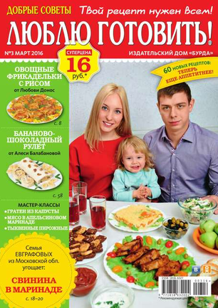 «Добрые советы. Люблю готовить!» — журнал о вкусной еде, не похожий на другие кулинарные издания. Все опубликованные в нем рецепты присланы в редакцию самими читателями. Каждый рецепт прошел конкурсный отбор, а его автор получил денежный приз. Ежемесячно на страницах журнала — более 100 коронных блюд, которые многократно проверены опытными хозяйками и которые можно смело брать в свою коллекцию рецептов тем, кто любит баловать родных и удивлять гостей.