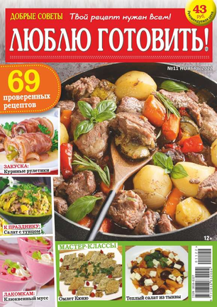 «Добрые советы. Люблю готовить!» — журнал о вкусной еде, не похожий на другие кулинарные издания. Все опубликованные в нем рецепты присланы в редакцию самими читателями. Каждый рецепт прошел конкурсный отбор, а его автор получил денежный приз. Ежемесячно на страницах журнала — более 100 коронных блюд, которые многократно проверены опытными хозяйками и которые можно смело брать в свою коллекцию рецептов тем, кто любит баловать родных и удивлять гостей.