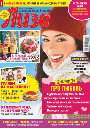 Самый популярный в России еженедельный журнал для молодых женщин «Лиза» стал еще интереснее, еще привлекательнее для читательниц. Теперь больше знаменитостей на страницах любимого журнала! Фитнес со звездой и звездный макияж, уроки стиля и самые горячие новости из жизни кумиров. А еще — модный шопинг, актуальная мода, новинки косметики и великолепные идеи для дома. Романтические истории о настоящей любви и рассказы читательниц о разных жизненных ситуациях. Аспекты психологии, секреты успешных отношений с окружающими и искусство сохранения любви.