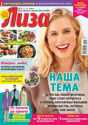 Самый популярный в России еженедельный журнал для молодых женщин «Лиза» стал еще интереснее, еще привлекательнее для читательниц. Теперь больше знаменитостей на страницах любимого журнала! Фитнес со звездой и звездный макияж, уроки стиля и самые горячие новости из жизни кумиров. А еще — модный шопинг, актуальная мода, новинки косметики и великолепные идеи для дома. Романтические истории о настоящей любви и рассказы читательниц о разных жизненных ситуациях. Аспекты психологии, секреты успешных отношений с окружающими и искусство сохранения любви.