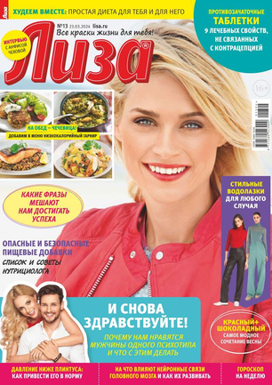 Самый популярный в России еженедельный журнал для молодых женщин «Лиза» стал еще интереснее, еще привлекательнее для читательниц. Теперь больше знаменитостей на страницах любимого журнала! Фитнес со звездой и звездный макияж, уроки стиля и самые горячие новости из жизни кумиров. А еще — модный шопинг, актуальная мода, новинки косметики и великолепные идеи для дома. Романтические истории о настоящей любви и рассказы читательниц о разных жизненных ситуациях. Аспекты психологии, секреты успешных отношений с окружающими и искусство сохранения любви.