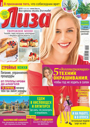 Самый популярный в России еженедельный журнал для молодых женщин «Лиза» стал еще интереснее, еще привлекательнее для читательниц. Теперь больше знаменитостей на страницах любимого журнала! Фитнес со звездой и звездный макияж, уроки стиля и самые горячие новости из жизни кумиров. А еще — модный шопинг, актуальная мода, новинки косметики и великолепные идеи для дома. Романтические истории о настоящей любви и рассказы читательниц о разных жизненных ситуациях. Аспекты психологии, секреты успешных отношений с окружающими и искусство сохранения любви.