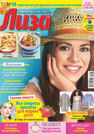 Самый популярный в России еженедельный журнал для молодых женщин «Лиза» стал еще интереснее, еще привлекательнее для читательниц. Теперь больше знаменитостей на страницах любимого журнала! Фитнес со звездой и звездный макияж, уроки стиля и самые горячие новости из жизни кумиров. А еще — модный шопинг, актуальная мода, новинки косметики и великолепные идеи для дома. Романтические истории о настоящей любви и рассказы читательниц о разных жизненных ситуациях. Аспекты психологии, секреты успешных отношений с окружающими и искусство сохранения любви.