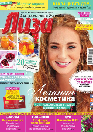 Самый популярный в России еженедельный журнал для молодых женщин «Лиза» стал еще интереснее, еще привлекательнее для читательниц. Теперь больше знаменитостей на страницах любимого журнала! Фитнес со звездой и звездный макияж, уроки стиля и самые горячие новости из жизни кумиров. А еще — модный шопинг, актуальная мода, новинки косметики и великолепные идеи для дома. Романтические истории о настоящей любви и рассказы читательниц о разных жизненных ситуациях. Аспекты психологии, секреты успешных отношений с окружающими и искусство сохранения любви.