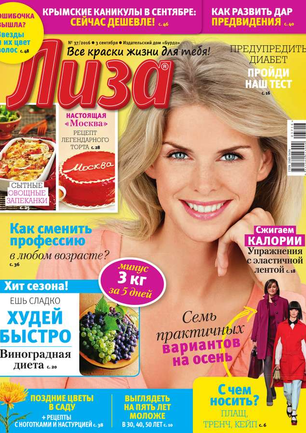 Самый популярный в России еженедельный журнал для молодых женщин «Лиза» стал еще интереснее, еще привлекательнее для читательниц. Теперь больше знаменитостей на страницах любимого журнала! Фитнес со звездой и звездный макияж, уроки стиля и самые горячие новости из жизни кумиров. А еще — модный шопинг, актуальная мода, новинки косметики и великолепные идеи для дома. Романтические истории о настоящей любви и рассказы читательниц о разных жизненных ситуациях. Аспекты психологии, секреты успешных отношений с окружающими и искусство сохранения любви.