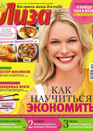 Самый популярный в России еженедельный журнал для молодых женщин «Лиза» стал еще интереснее, еще привлекательнее для читательниц. Теперь больше знаменитостей на страницах любимого журнала! Фитнес со звездой и звездный макияж, уроки стиля и самые горячие новости из жизни кумиров. А еще — модный шопинг, актуальная мода, новинки косметики и великолепные идеи для дома. Романтические истории о настоящей любви и рассказы читательниц о разных жизненных ситуациях. Аспекты психологии, секреты успешных отношений с окружающими и искусство сохранения любви.