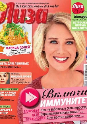 Самый популярный в России еженедельный журнал для молодых женщин «Лиза» стал еще интереснее, еще привлекательнее для читательниц. Теперь больше знаменитостей на страницах любимого журнала! Фитнес со звездой и звездный макияж, уроки стиля и самые горячие новости из жизни кумиров. А еще — модный шопинг, актуальная мода, новинки косметики и великолепные идеи для дома. Романтические истории о настоящей любви и рассказы читательниц о разных жизненных ситуациях. Аспекты психологии, секреты успешных отношений с окружающими и искусство сохранения любви.