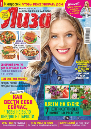 Самый популярный в России еженедельный журнал для молодых женщин «Лиза» стал еще интереснее, еще привлекательнее для читательниц. Теперь больше знаменитостей на страницах любимого журнала! Фитнес со звездой и звездный макияж, уроки стиля и самые горячие новости из жизни кумиров. А еще — модный шопинг, актуальная мода, новинки косметики и великолепные идеи для дома. Романтические истории о настоящей любви и рассказы читательниц о разных жизненных ситуациях. Аспекты психологии, секреты успешных отношений с окружающими и искусство сохранения любви.