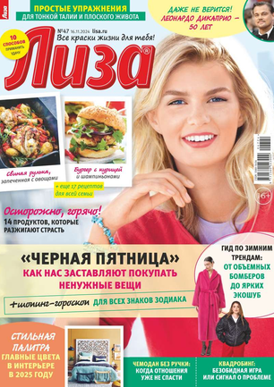 Самый популярный в России еженедельный журнал для молодых женщин «Лиза» стал еще интереснее, еще привлекательнее для читательниц. Теперь больше знаменитостей на страницах любимого журнала! Фитнес со звездой и звездный макияж, уроки стиля и самые горячие новости из жизни кумиров. А еще — модный шопинг, актуальная мода, новинки косметики и великолепные идеи для дома. Романтические истории о настоящей любви и рассказы читательниц о разных жизненных ситуациях. Аспекты психологии, секреты успешных отношений с окружающими и искусство сохранения любви.