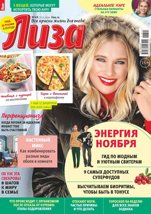 Самый популярный в России еженедельный журнал для молодых женщин «Лиза» стал еще интереснее, еще привлекательнее для читательниц. Теперь больше знаменитостей на страницах любимого журнала! Фитнес со звездой и звездный макияж, уроки стиля и самые горячие новости из жизни кумиров. А еще — модный шопинг, актуальная мода, новинки косметики и великолепные идеи для дома. Романтические истории о настоящей любви и рассказы читательниц о разных жизненных ситуациях. Аспекты психологии, секреты успешных отношений с окружающими и искусство сохранения любви.
