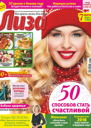 Самый популярный в России еженедельный журнал для молодых женщин «Лиза» стал еще интереснее, еще привлекательнее для читательниц. Теперь больше знаменитостей на страницах любимого журнала! Фитнес со звездой и звездный макияж, уроки стиля и самые горячие новости из жизни кумиров. А еще — модный шопинг, актуальная мода, новинки косметики и великолепные идеи для дома. Романтические истории о настоящей любви и рассказы читательниц о разных жизненных ситуациях. Аспекты психологии, секреты успешных отношений с окружающими и искусство сохранения любви.
