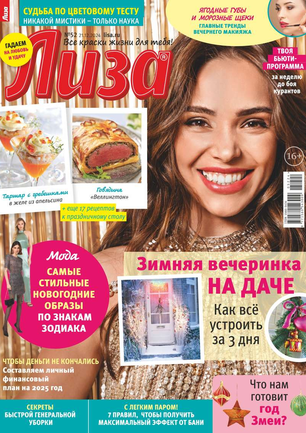Самый популярный в России еженедельный журнал для молодых женщин «Лиза» стал еще интереснее, еще привлекательнее для читательниц. Теперь больше знаменитостей на страницах любимого журнала! Фитнес со звездой и звездный макияж, уроки стиля и самые горячие новости из жизни кумиров. А еще — модный шопинг, актуальная мода, новинки косметики и великолепные идеи для дома. Романтические истории о настоящей любви и рассказы читательниц о разных жизненных ситуациях. Аспекты психологии, секреты успешных отношений с окружающими и искусство сохранения любви.