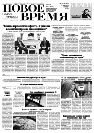 Общественно- политическая газета “Новое Время” была создана в 1992-м году и за 20 лет своего существования сумела заслужить среди армянских читателей право называться лучшей русскоязычной газетой в РА. Помимо сугубо политических тем издание обращается также к вопросам социальным, научным, культурным. Внимание уделяется и проблемам армянской диаспоры…