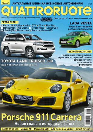 Quattroruote (Кватроруте) — это великолепно изданный автомобильный журнал, охватывающий весь спектр машин, существующих в настоящее время на планете. Его главная цель — дать читателям самую объективную и исчерпывающую информацию обо всех автомобилях мира, представленных на российском рынке. Журнал Quattroruote имеет собственный автомобильный полигон, который находится на территории Италии, располагает отлично оборудованной скоростной трассой и великолепными условиями для самых разнообразных высокотехнологичных исследований. Всевозможные тесты автомобилей проводятся здесь постоянно, по самым высоким стандартам качества и выявляют все достоинства и недостатки каждой машины. Большое внимание журнал Quattroruote уделяет автокаталогу с техническими характеристиками и актуальными ценами на все новые автомобили и машины с пробегом.