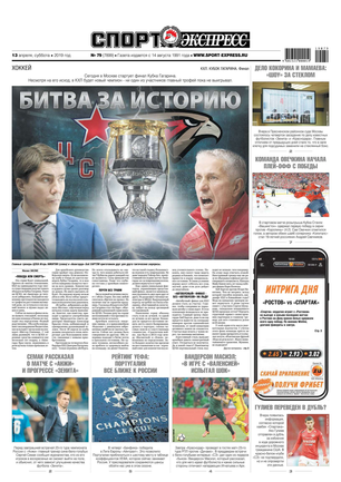 «Спорт-Экспресс» — ежедневная газета, полностью посвященная спорту. На страницах издания вы найдете интервью с известными спортсменами и тренерами, последние новости, материалы о футболе и хоккее с шайбой, баскетболе и керлинге, теннисе и фигурном катании, в общем, обо всех существующих ныне видах спорта. Вот уже несколько лет «СЭ» представляет Россию в European Sports Magazines (Европейской ассоциации спортивных изданий).