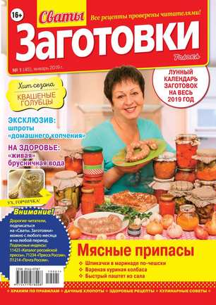 Более 100 рецептов заготовок от Сватов в каждом номере: соленья и маринады, салаты и ассорти, соусы и приправы, заготовки к сезону, сладкие заготовки, напитки, винный погребок, мясные деликатесы, здоровые рецепты, целебные заготовки, дачные хлопоты, правила хранения, а также кроссворды и сканворды для досуга. Лучшими рецептами поделятся с вами сваты Любовь Сергеевна и Михаил Михайлович.