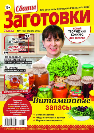 Более 100 рецептов заготовок от Сватов в каждом номере: соленья и маринады, салаты и ассорти, соусы и приправы, заготовки к сезону, сладкие заготовки, напитки, винный погребок, мясные деликатесы, здоровые рецепты, целебные заготовки, дачные хлопоты, правила хранения, а также кроссворды и сканворды для досуга. Лучшими рецептами поделятся с вами сваты Любовь Сергеевна и Михаил Михайлович.