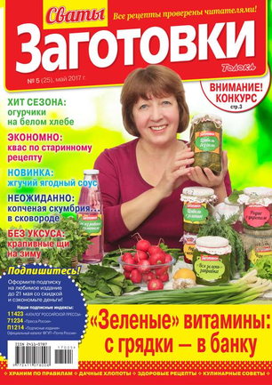 Более 100 рецептов заготовок от Сватов в каждом номере: соленья и маринады, салаты и ассорти, соусы и приправы, заготовки к сезону, сладкие заготовки, напитки, винный погребок, мясные деликатесы, здоровые рецепты, целебные заготовки, дачные хлопоты, правила хранения, а также кроссворды и сканворды для досуга. Лучшими рецептами поделятся с вами сваты Любовь Сергеевна и Михаил Михайлович.