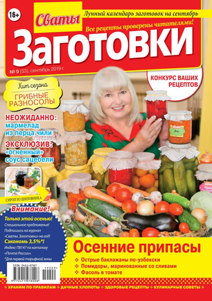 Более 100 рецептов заготовок от Сватов в каждом номере: соленья и маринады, салаты и ассорти, соусы и приправы, заготовки к сезону, сладкие заготовки, напитки, винный погребок, мясные деликатесы, здоровые рецепты, целебные заготовки, дачные хлопоты, правила хранения, а также кроссворды и сканворды для досуга. Лучшими рецептами поделятся с вами сваты Любовь Сергеевна и Михаил Михайлович.