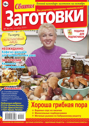 Более 100 рецептов заготовок от Сватов в каждом номере: соленья и маринады, салаты и ассорти, соусы и приправы, заготовки к сезону, сладкие заготовки, напитки, винный погребок, мясные деликатесы, здоровые рецепты, целебные заготовки, дачные хлопоты, правила хранения, а также кроссворды и сканворды для досуга. Лучшими рецептами поделятся с вами сваты Любовь Сергеевна и Михаил Михайлович.