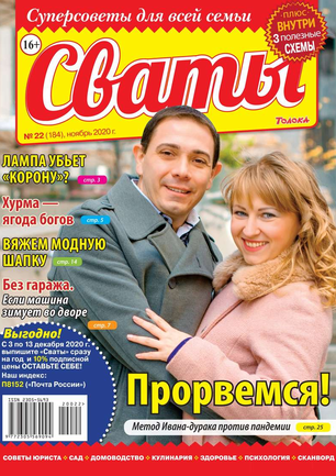 «Сват плохого не посоветует», — говорят в народе. В каждом номере журнала «Сваты» вы найдете: проверенные советы от читателей, экспертов, юристов, медиков, психологов, кулинарные рецепты, секреты здоровья, помощь в воспитании детей разного возраста, песни, байки, анекдоты. И все это в ярком, красочном оформлении.