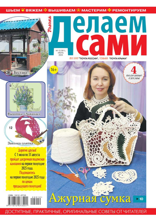 «Делаем сами» — журнал для мастеров и мастериц, находящихся в постоянном поиске свежих творческих идей и решений. Уникальность издания в том, что оно состоит главным образом из писем читателей. Авторы делятся своим опытом и доступными идеями, дают полезные практические советы о том, что можно спаять и вырезать, выпилить и выстругать, собрать и склеить, выкроить и сострочить, вышить, связать и сплести своими руками, чтобы сделать свой дом, дачу, участок красивее и уютнее, а жизнь — комфортнее и интереснее!
