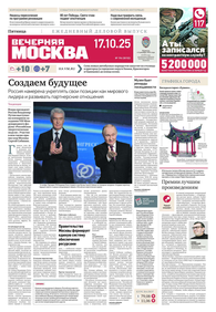 «Вечерняя Москва» — ежедневная российская вечерняя газета, старейшее из вечерних изданий в России, учрежденное в 1923 году. Выходит пять дней в неделю, кроме субботы и воскресенья. Отличается тем, что рассказывает о событиях еще не завершившегося дня. Оперативно освещает хронику и особенности жизни Москвы, охватывает все слои общества и большинство профессиональных и возрастных групп читателей.Издание представлено тремя выпусками – утренним ежедневным, вечерним (выходит три раза в неделю), еженедельным (выходит по четвергам).