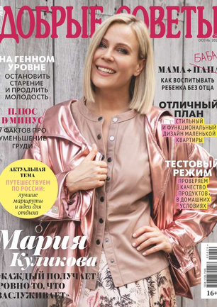 «Добрые советы» — это ежемесячный журнал для женщин. Его главные темы — секреты привлекательности, хорошего самочувствия, домашнего уюта и гармонии в отношениях с близкими. Каждый номер журнала открывает интервью со звездой — о ее личной жизни, профессиональных успехах, о доме, семье и детях. Журнал «Добрые советы» рассказывает обо всем, что интересует современную женщину. Стильные идеи и модные акценты. Новинки косметики. Меню здоровья и рецепты красоты. Дети и родители. Кошелек и карьера.