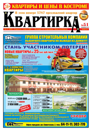 "Квартирка" – единственное полностью специализированное рекламное издание в сфере недвижимости в Костромской области. Газете уже более 10 лет.