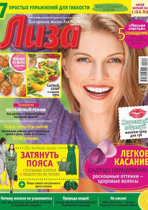 Самый популярный в России еженедельный журнал для молодых женщин «Лиза» стал еще интереснее, еще привлекательнее для читательниц. Теперь больше знаменитостей на страницах любимого журнала! Фитнес со звездой и звездный макияж, уроки стиля и самые горячие новости из жизни кумиров. А еще — модный шопинг, актуальная мода, новинки косметики и великолепные идеи для дома. Романтические истории о настоящей любви и рассказы читательниц о разных жизненных ситуациях. Аспекты психологии, секреты успешных отношений с окружающими и искусство сохранения любви.