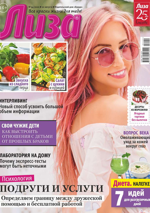 Самый популярный в России еженедельный журнал для молодых женщин «Лиза» стал еще интереснее, еще привлекательнее для читательниц. Теперь больше знаменитостей на страницах любимого журнала! Фитнес со звездой и звездный макияж, уроки стиля и самые горячие новости из жизни кумиров. А еще — модный шопинг, актуальная мода, новинки косметики и великолепные идеи для дома. Романтические истории о настоящей любви и рассказы читательниц о разных жизненных ситуациях. Аспекты психологии, секреты успешных отношений с окружающими и искусство сохранения любви.