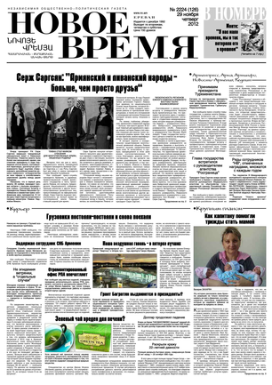 Общественно- политическая газета “Новое Время” была создана в 1992-м году и за 20 лет своего существования сумела заслужить среди армянских читателей право называться лучшей русскоязычной газетой в РА. Помимо сугубо политических тем издание обращается также к вопросам социальным, научным, культурным. Внимание уделяется и проблемам армянской диаспоры…