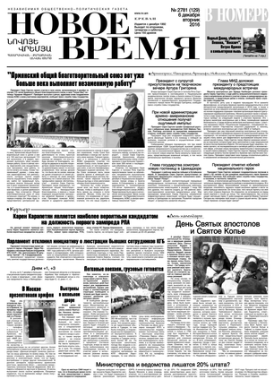 Общественно- политическая газета “Новое Время” была создана в 1992-м году и за 20 лет своего существования сумела заслужить среди армянских читателей право называться лучшей русскоязычной газетой в РА. Помимо сугубо политических тем издание обращается также к вопросам социальным, научным, культурным. Внимание уделяется и проблемам армянской диаспоры…