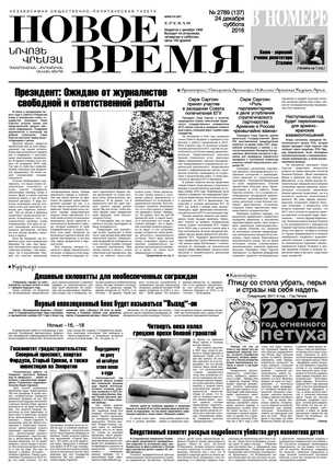 Общественно- политическая газета “Новое Время” была создана в 1992-м году и за 20 лет своего существования сумела заслужить среди армянских читателей право называться лучшей русскоязычной газетой в РА. Помимо сугубо политических тем издание обращается также к вопросам социальным, научным, культурным. Внимание уделяется и проблемам армянской диаспоры…