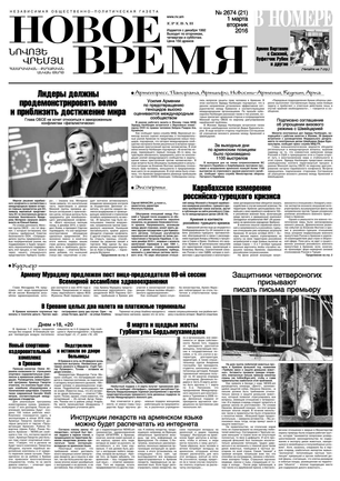 Общественно- политическая газета “Новое Время” была создана в 1992-м году и за 20 лет своего существования сумела заслужить среди армянских читателей право называться лучшей русскоязычной газетой в РА. Помимо сугубо политических тем издание обращается также к вопросам социальным, научным, культурным. Внимание уделяется и проблемам армянской диаспоры…