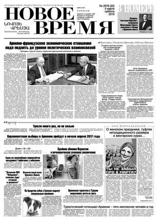 Общественно- политическая газета “Новое Время” была создана в 1992-м году и за 20 лет своего существования сумела заслужить среди армянских читателей право называться лучшей русскоязычной газетой в РА. Помимо сугубо политических тем издание обращается также к вопросам социальным, научным, культурным. Внимание уделяется и проблемам армянской диаспоры…