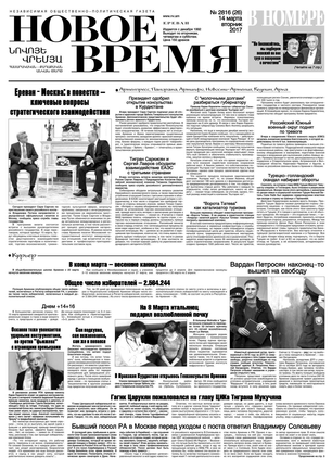 Общественно- политическая газета “Новое Время” была создана в 1992-м году и за 20 лет своего существования сумела заслужить среди армянских читателей право называться лучшей русскоязычной газетой в РА. Помимо сугубо политических тем издание обращается также к вопросам социальным, научным, культурным. Внимание уделяется и проблемам армянской диаспоры…