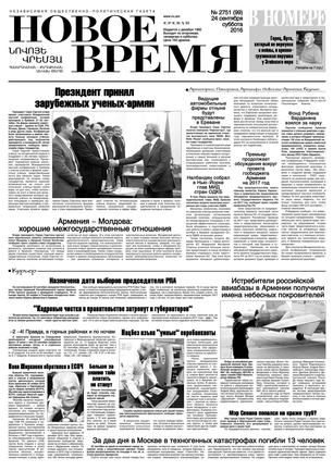 Общественно- политическая газета “Новое Время” была создана в 1992-м году и за 20 лет своего существования сумела заслужить среди армянских читателей право называться лучшей русскоязычной газетой в РА. Помимо сугубо политических тем издание обращается также к вопросам социальным, научным, культурным. Внимание уделяется и проблемам армянской диаспоры…