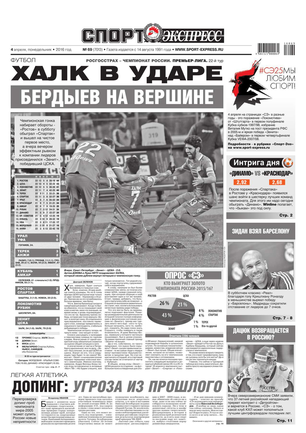 «Спорт-Экспресс» — ежедневная газета, полностью посвященная спорту. На страницах издания вы найдете интервью с известными спортсменами и тренерами, последние новости, материалы о футболе и хоккее с шайбой, баскетболе и керлинге, теннисе и фигурном катании, в общем, обо всех существующих ныне видах спорта. Вот уже несколько лет «СЭ» представляет Россию в European Sports Magazines (Европейской ассоциации спортивных изданий).