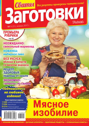 Более 100 рецептов заготовок от Сватов в каждом номере: соленья и маринады, салаты и ассорти, соусы и приправы, заготовки к сезону, сладкие заготовки, напитки, винный погребок, мясные деликатесы, здоровые рецепты, целебные заготовки, дачные хлопоты, правила хранения, а также кроссворды и сканворды для досуга. Лучшими рецептами поделятся с вами сваты Любовь Сергеевна и Михаил Михайлович.