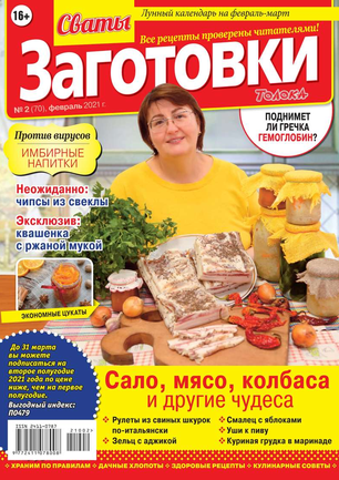 Более 100 рецептов заготовок от Сватов в каждом номере: соленья и маринады, салаты и ассорти, соусы и приправы, заготовки к сезону, сладкие заготовки, напитки, винный погребок, мясные деликатесы, здоровые рецепты, целебные заготовки, дачные хлопоты, правила хранения, а также кроссворды и сканворды для досуга. Лучшими рецептами поделятся с вами сваты Любовь Сергеевна и Михаил Михайлович.