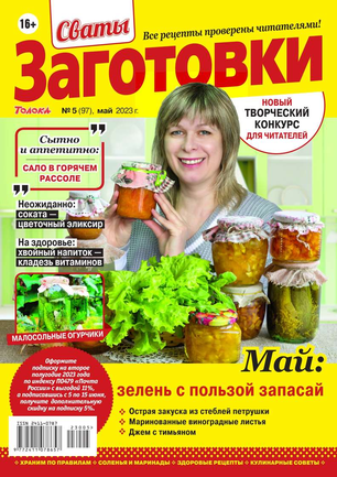 Более 100 рецептов заготовок от Сватов в каждом номере: соленья и маринады, салаты и ассорти, соусы и приправы, заготовки к сезону, сладкие заготовки, напитки, винный погребок, мясные деликатесы, здоровые рецепты, целебные заготовки, дачные хлопоты, правила хранения, а также кроссворды и сканворды для досуга. Лучшими рецептами поделятся с вами сваты Любовь Сергеевна и Михаил Михайлович.