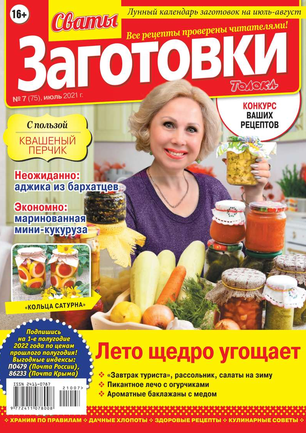 Более 100 рецептов заготовок от Сватов в каждом номере: соленья и маринады, салаты и ассорти, соусы и приправы, заготовки к сезону, сладкие заготовки, напитки, винный погребок, мясные деликатесы, здоровые рецепты, целебные заготовки, дачные хлопоты, правила хранения, а также кроссворды и сканворды для досуга. Лучшими рецептами поделятся с вами сваты Любовь Сергеевна и Михаил Михайлович.