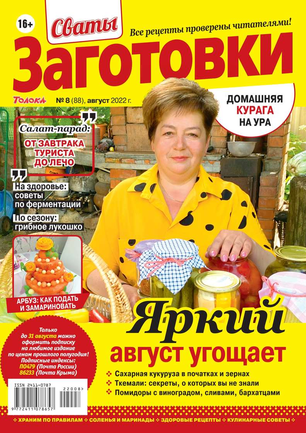 Более 100 рецептов заготовок от Сватов в каждом номере: соленья и маринады, салаты и ассорти, соусы и приправы, заготовки к сезону, сладкие заготовки, напитки, винный погребок, мясные деликатесы, здоровые рецепты, целебные заготовки, дачные хлопоты, правила хранения, а также кроссворды и сканворды для досуга. Лучшими рецептами поделятся с вами сваты Любовь Сергеевна и Михаил Михайлович.