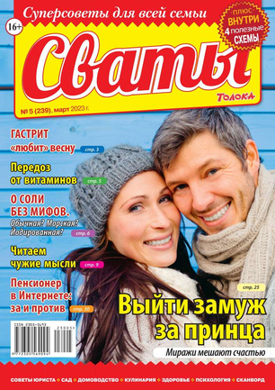 «Сват плохого не посоветует», — говорят в народе. В каждом номере журнала «Сваты» вы найдете: проверенные советы от читателей, экспертов, юристов, медиков, психологов, кулинарные рецепты, секреты здоровья, помощь в воспитании детей разного возраста, песни, байки, анекдоты. И все это в ярком, красочном оформлении.