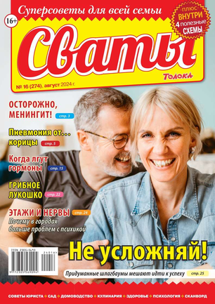 «Сват плохого не посоветует», — говорят в народе. В каждом номере журнала «Сваты» вы найдете: проверенные советы от читателей, экспертов, юристов, медиков, психологов, кулинарные рецепты, секреты здоровья, помощь в воспитании детей разного возраста, песни, байки, анекдоты. И все это в ярком, красочном оформлении.