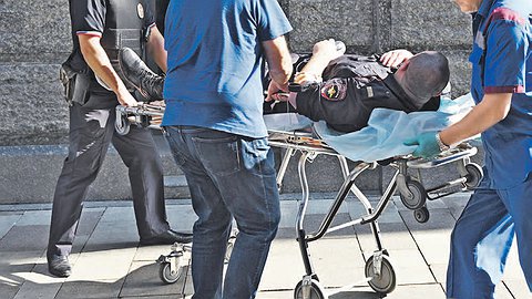 Погибли два охранника бизнес-центра. Восемь человек пострадали, включая полицейского, который был ранен в ногу.