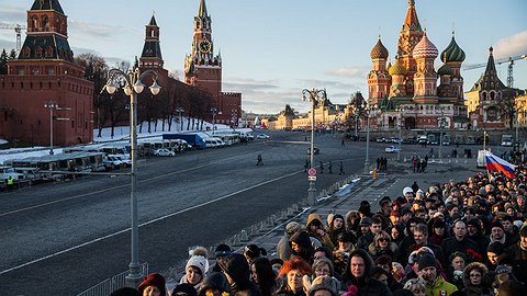 Внизу, под мостом, у Кремлевской стены и на набережной, в это время разворачивается крупная военно-полицейская операция. Как же они боятся его, даже мертвого. На Болотной, где я видел три года назад, как омоновцы карабкались на трибуну, где он стоял в тот момент, когда на площади уже начинался хаос, сейчас выстроились восемь огромных оранжевых машин-цистерн, предназначенных перекрывать улицы в том случае, если скорбящие мужчины и женщины с цветами пойдут на Кремль.