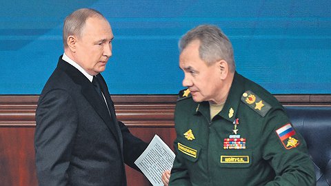 А до этого Владимир Путин на глазах у зала переговаривался сначала с начальником Генерального штаба Валерием Герасимовым, затем еще дольше — с министром обороны Сергеем Шойгу.
